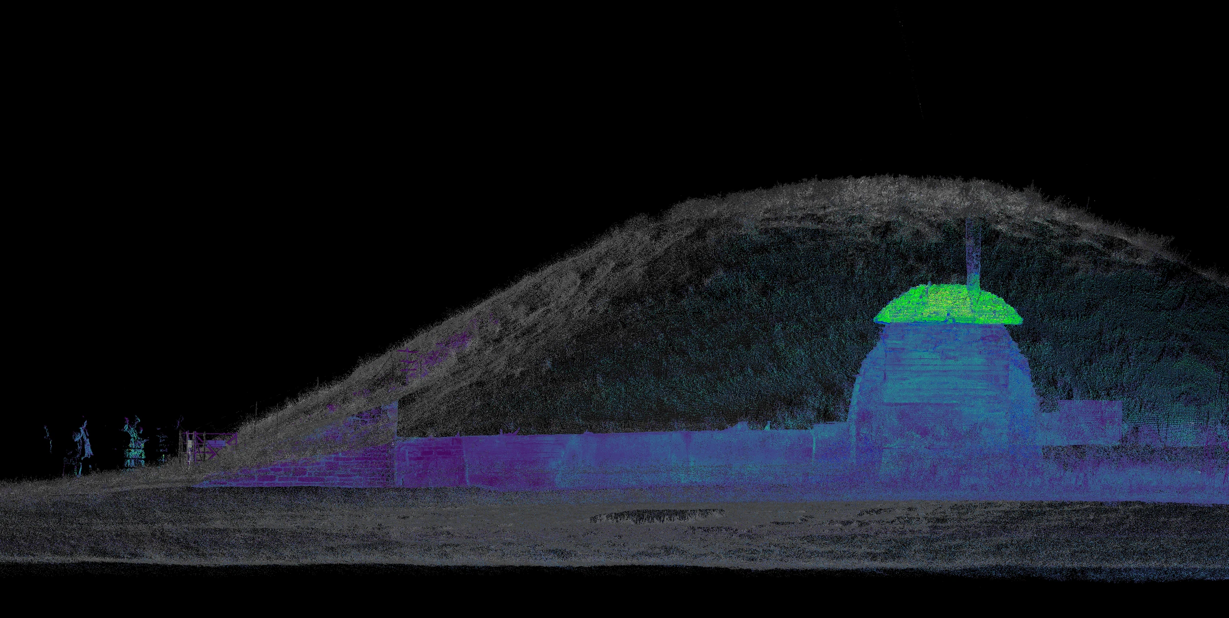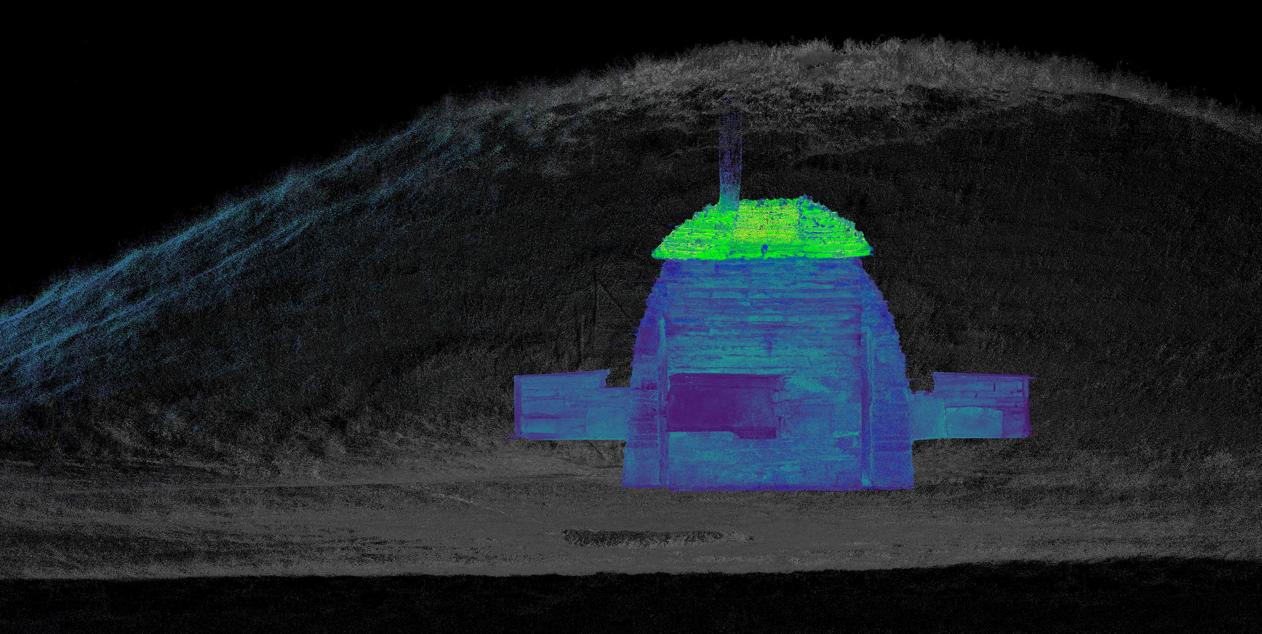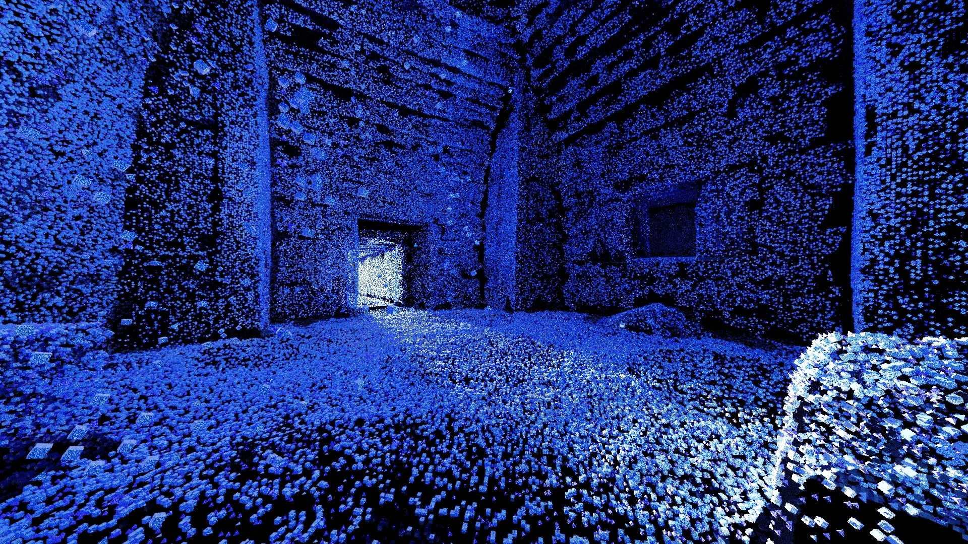 Animation depicting spirits within the Neolithic mausoleum of Maeshowe on the Scottish island of Orkney being freed by the yearly winter solstice solar alignment event, made using public-access point cloud lidar data found on OpenHeritage3D.com